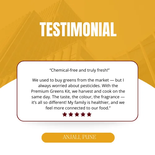 With over 20+ years of agricultural science and hands-on research, we help Indian families grow safe, clean, toxin-free food right at home — whether it’s a balcony, terrace, or a small sunny corner.